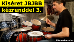 Ebben a videóban egy olyan kísérettel foglalkozunk, amelyben a JBJBB kézrend után egy tizenhatodot a bal lábunkkal szólaltatunk meg a lábcintányéron, majd kétszer ismételjük a kézrendet.